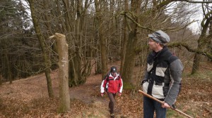 Wir gehen zum Abzweig Marienstraße und wandern stetig bergauf nach Südwesten in den Wald.
